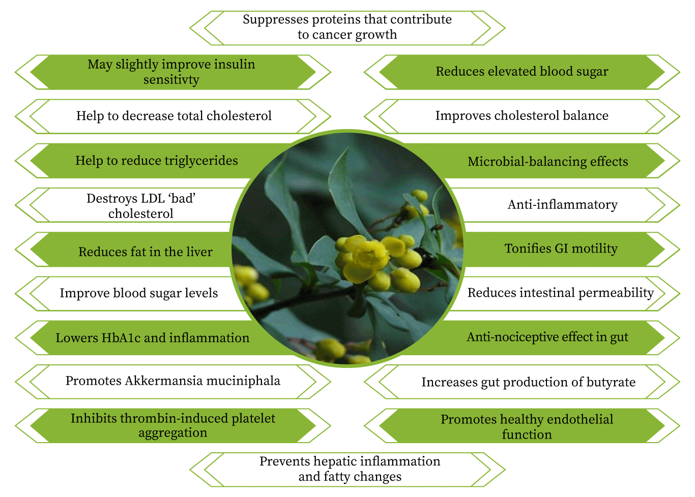 It is used singly or in combination with other medicinal plants for treating a variety of ailments like jaundice, enlargement of spleen, leprosy, rheumatism, fever, morning/evening sickness, and snakebite, and so forth. In addition, the decoction of root or stem of Berberis known as “Rasaut” is specifically used in eye disease, skin disorders, and indolent ulcers. It's herbal formulations are used to treat malaria, bleeding, fever, skin and eye infections, jaundice, diarrhoea and hepatitis for a long time. It's traditional use as anti-microbial, anti-bacterial, anti-pyretic, immunostimulant, laxative, anti-haemorrhagic and anti-inflammatory agent is also well known.